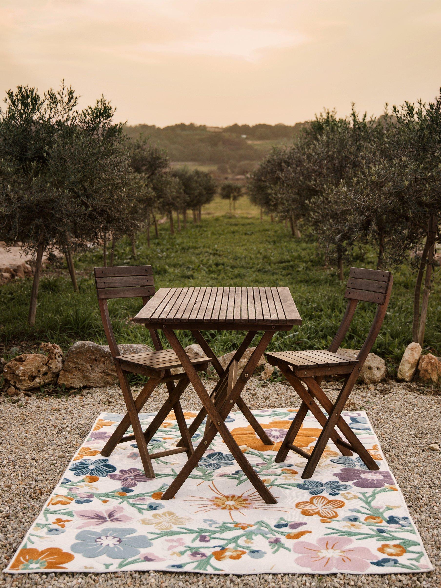 - Consider the size of your balcony, terrace, or garden and choose a rug that helps define seating or dining areas. For more tips on choosing sizes, have a look at our rug size guide.