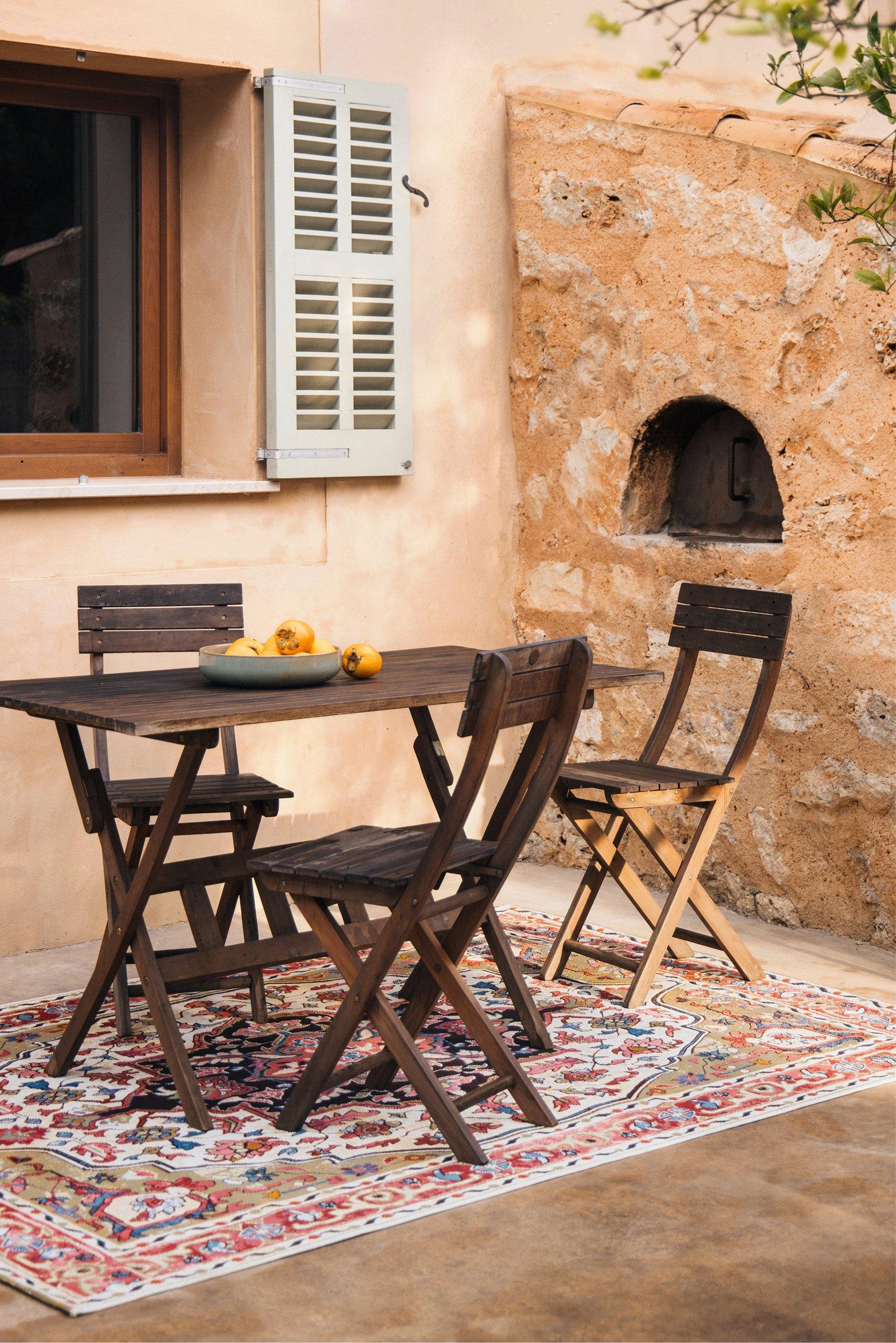 Classic outdoor rugs bring a sense of warmth and familiarity to outdoor spaces, making them feel welcoming and lived-in. Traditional patterns and softer colour palettes help create an inviting atmosphere that suits both terraces and garden seating areas.