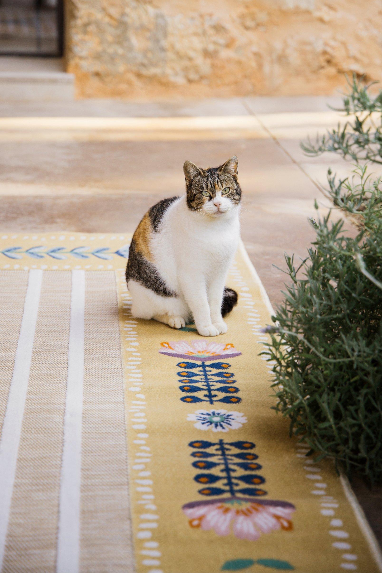- Use a rug to brighten balconies, terraces, or garden seating areas without overwhelming the space.