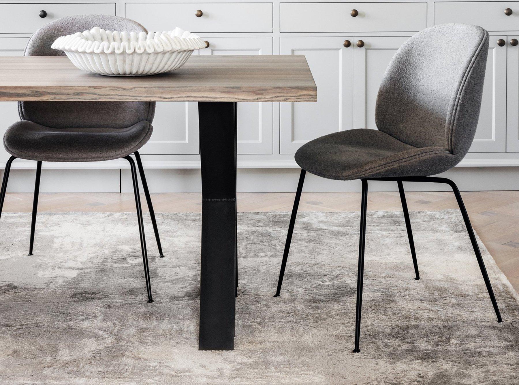 A low-pile dining room rug makes it easy to slide chairs in and out, while adding comfort and style to your space. To achieve a balanced look, choose a rug size for your dining table that mirrors the table’s shape. Round rugs for round tables and rectangular rugs for longer dining tables. This ensures a cohesive layout and prevents chair legs from catching on the edge of the rug.