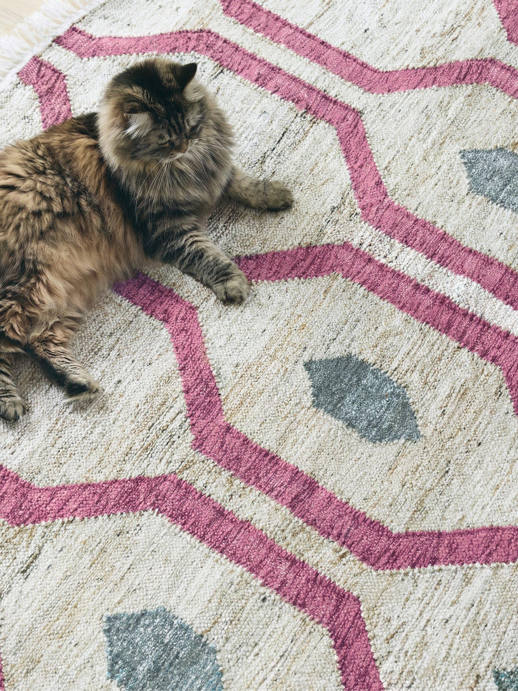 Since polypropylene is strong and durable, it’s suitable for high-traffic areas, making it one of the best materials for outdoor decks. It can also be treated to withstand UV exposure better. Due to the characteristics of the material, most polypropylene rugs are thin, like flatweave rugs. When you think about it, a thick and cozy high-pile rug wouldn’t be so comfortable after exposure to heavy rain in your outdoor area. Instead, a low outdoor rug is better suited for outside use.