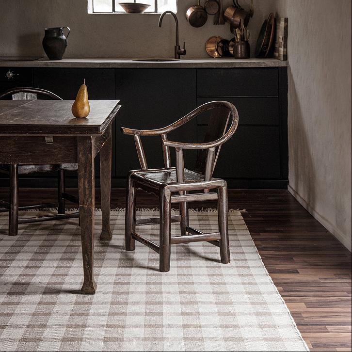 - Solid-colour rugs: Simple rugs in beige, ivory, taupe or soft grey tones. These shades match just about any kitchen style and offer a clean, classic base that won’t go out of style.