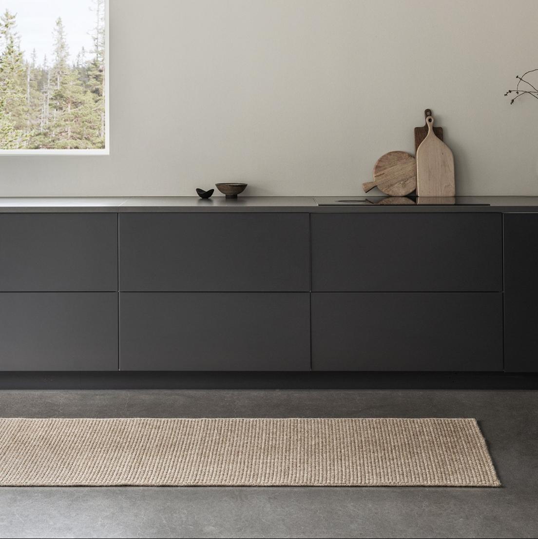 - Minimal colour: Stick to soft neutrals like a beige kitchen rug or a kitchen rug in grey. Neutral tones help to make spaces feel larger and cleaner, especially in smaller or darker rooms.