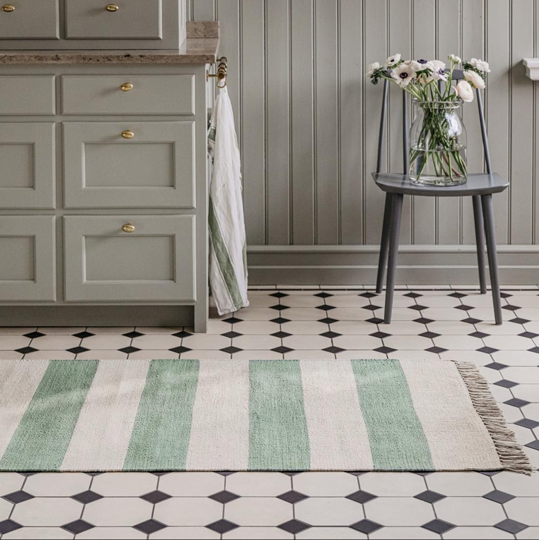 - Tone-on-tone patterns: Slight variations in shade within the same colour family, like a cream rug with off-white accents. This subtle style adds texture and interest without overpowering the rest of your kitchen decor.